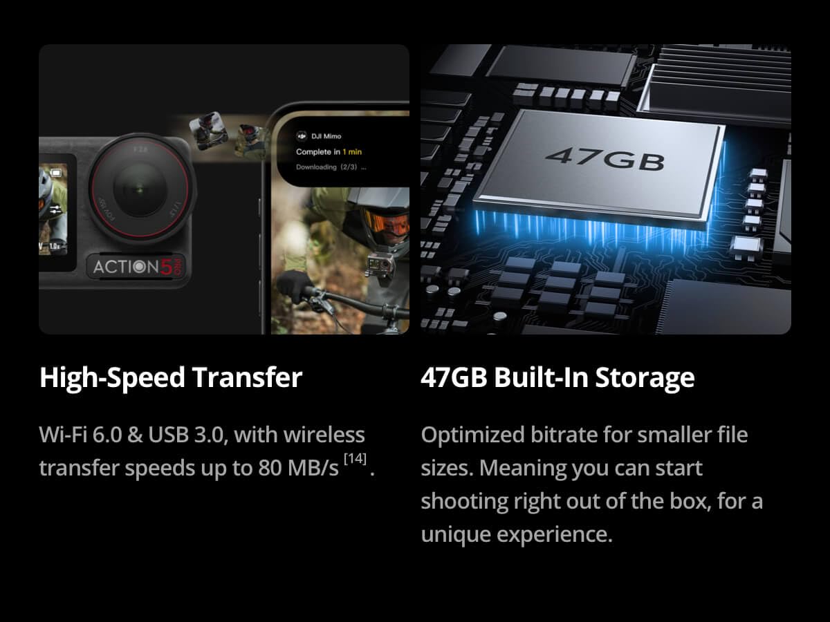 - Capture Urban Nightscapes – Osmo Action 5 Pro features a new 1/1.3″ sensor for stunning low-light. Great for nighttime biking adventures in dark environments.