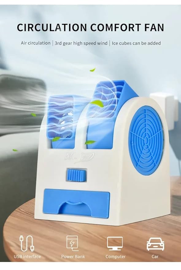 Generic® Mini Cooler AC USB and Battery Operated Air Mini Water Air Cooler Cooling Fan Duel Blower with Ice Chambe Perfect for Temple,Home,Kitchen USE, Study Many (MULTI COLOR) TAR1