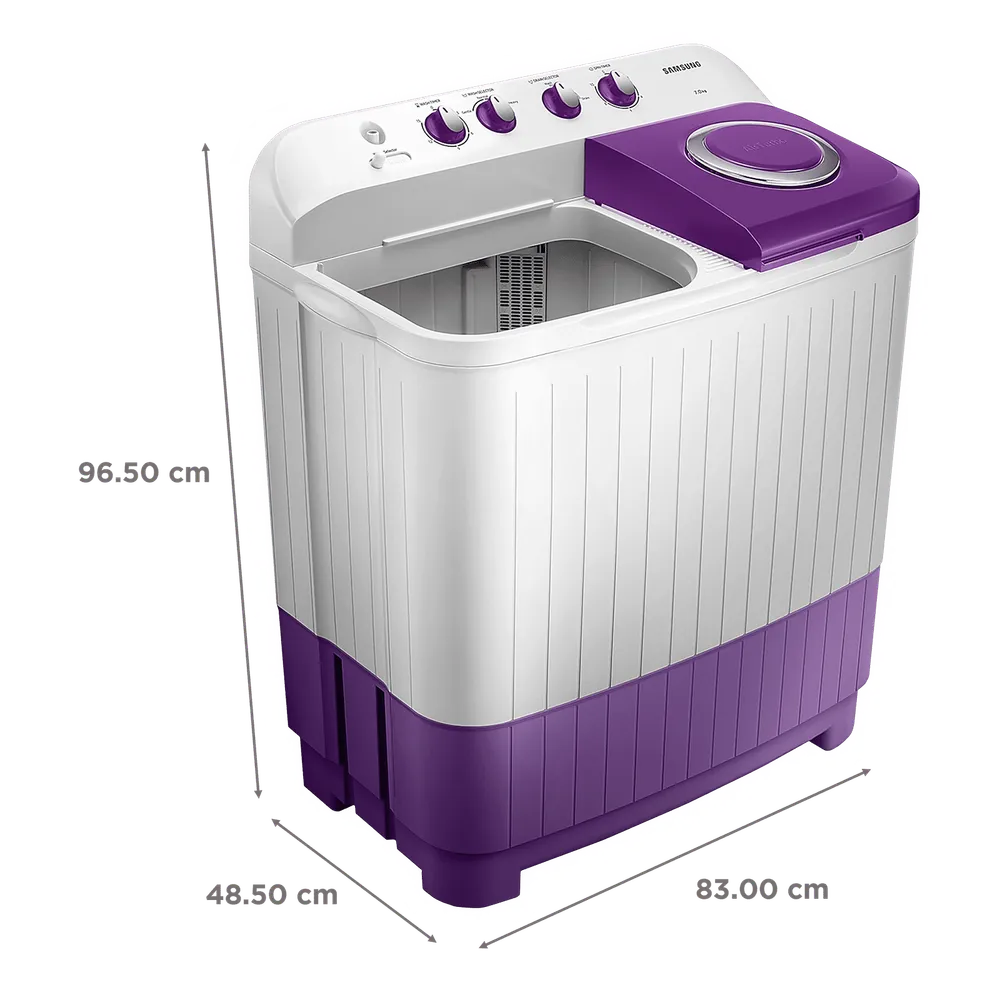 Designed to cater to the laundry needs of a family sized of 6-8 members, the SAMSUNG 7kg Semi-Automatic Top Load Washing Machine features ample capacity, allowing for efficient cleaning. Furthermore, it features diverse wash programs for cleaning fabrics ranging from heavy-duty bedding to delicate clothing.